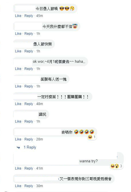 不過,睇到這裡,其實你都應該估到這只愚人節的宣傳之一吧!眼利的網民,早已看到該帖文下方 Hashtag 「愚人節快樂」,所以不少網民都沒中招,更留言祝大家愚人節快樂,「今日愚人節喎」、「今天我什麼都不信」、「ok wor,~ 4 月 1 呢個廣告~~ haha」、「好好笑」。